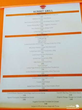 Sunset Grill Restaurant استمتع بمناظر غروب الشمس الساحرة على بحر أندامان وشاطئ كامالا من خلال نوافذ ممتدة من الأرض حتى السقف بزاوية 180 درجة ، إبداعات الطهي من قبل الشيف التنفيذي ماريو كاراميلا ، والذي يتميز بقطع رئيسية شهية ومأكولات بحرية مشوية و استمتع بالتندوري الهندي الرقيق والنكهة والتكا والكباب من فرن التندوري ، بالإضافة إلى التخصصات المميزة مثل أفضل واجيو بيف ويلينغتون التي يمكن العثور عليها في جزيرة بوكيت ومجموعة رائعة من النبيذ والمشروبات الروحية والمقبلات.